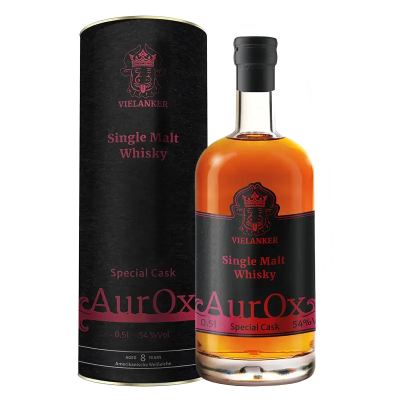 Diese besondere Abfüllung zeigt, was in speziell ausgewählten Fässern steckt: Gereift in einem ehemaligen Jack Daniel’s Barrel, bringt der AurOx Special Cask markante Vanille- und Karamellnoten, begleitet von dunklen Früchten und würzigen Holzanklängen. Der höhere Alkoholgehalt von 54 % verstärkt die Aromenvielfalt und macht ihn zur kraftvollen Entdeckung für fortgeschrittene Genießer.